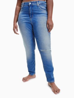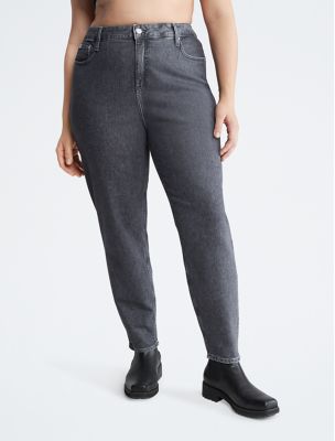 Cut in a silhouette reminiscent of the 90's, these jeans feature a high rise waist and a tapered leg fit. Designed with five-pocket styling and made in a black stonewash. Finished with Calvin Klein branded hardware and leather badge. Material: 79% Cotton, 20% Post-consumer Recycled Cotton, 1% Lycra®.