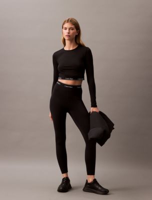 Minimalist with a solid body, this slim t-shirt is constructed from moisture-wicking fabric for total comfort and breathability during workouts. Created with long sleeves and a crewneck. Cut in cropped length and finished with repeating Calvin Klein logos at the hem. Material: 88% Polyester, 12% Elastane.