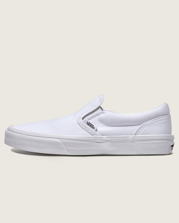 Since its debut in 1979, the Slip-On has embodied Southern California's casual, creative spirit. What started as a laid-back skate staple has become a pop culture icon-a global symbol of rebellion and self-expression. Vans Big Kids Classic Slip-On Shoes (True White) - 6.5