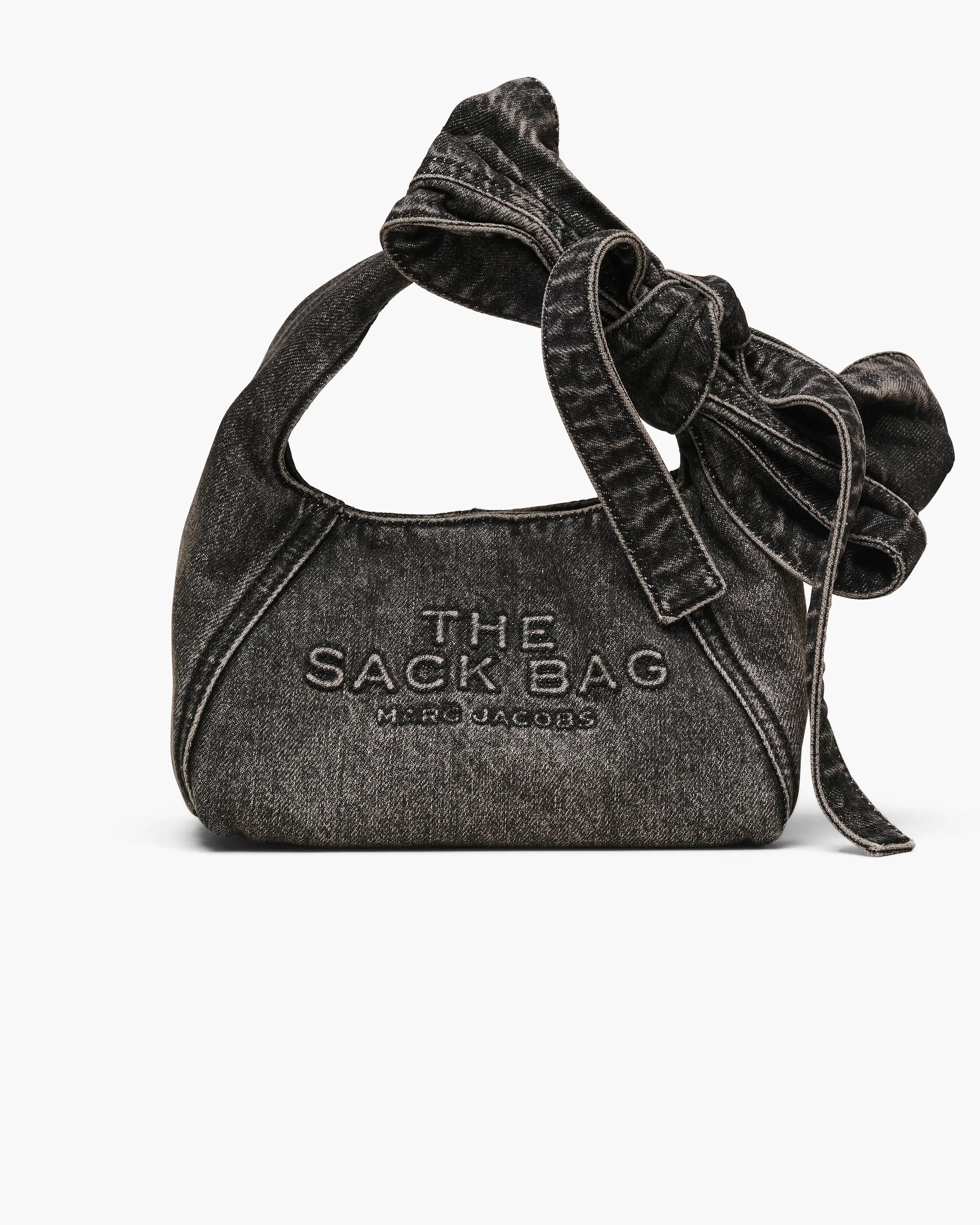 A bold twist on our Mini Sack, this style features an oversized bow for an everyday statement. Crafted in soft denim, it offers versatile styling with a top handle or adjustable leather crossbody strap. Inside, a D-ring and clip-in denim zip pouch keep cards, cash and keys organized, while raised stitched branding adds a signature finish. | MARC JACOBS Marc Jacobs The Bow Denim Mini Sack Bag in Medium Wash Indigo