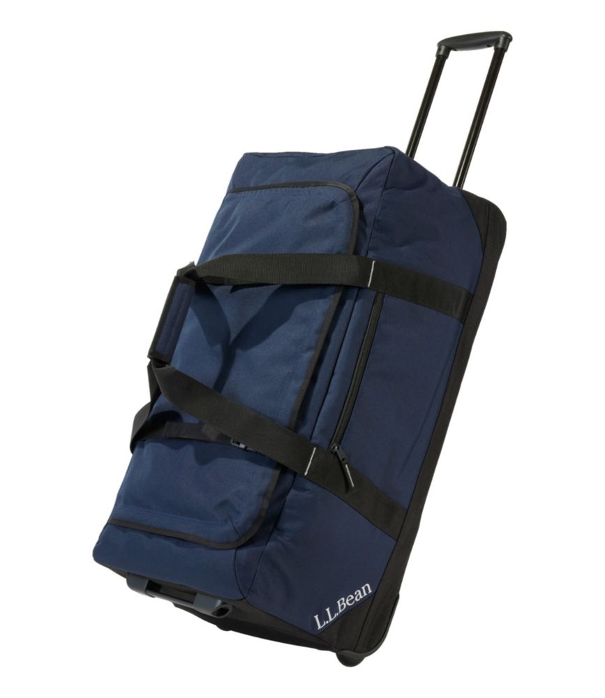 We've improved our most popular large rolling duffle, loved since 1996 for its durability, fun colors and great price. Now made of 100% recycled fabrics, with a new U-shaped zipper that opens wider for easier access and an innovative folding design. Coated interior for added weather protection; tested for 24 hours in our deep freeze with no signs of cracking, flaking or peeling. PFC/PFAS-free durable water repellent (DWR). Waterproof fabrics. Zippers and seams not waterproof. 100% recycled 600-denier polyester on body, with 100% recycled 1000-denier polyester on base that's twice as abrasion resistant for added durability. Fabrics are made from recycled plastic bottles; this 95L bag uses 39 plastic bottles. Spot clean. New U-shaped zippered opening offers 50% more access to contents inside. Roomy main compartment. Grab handles at either end for easy maneuvering, with low-profile lash points and one rigid handle that helps stabilize bag. Zipper flap adds weather protection. Features sma
