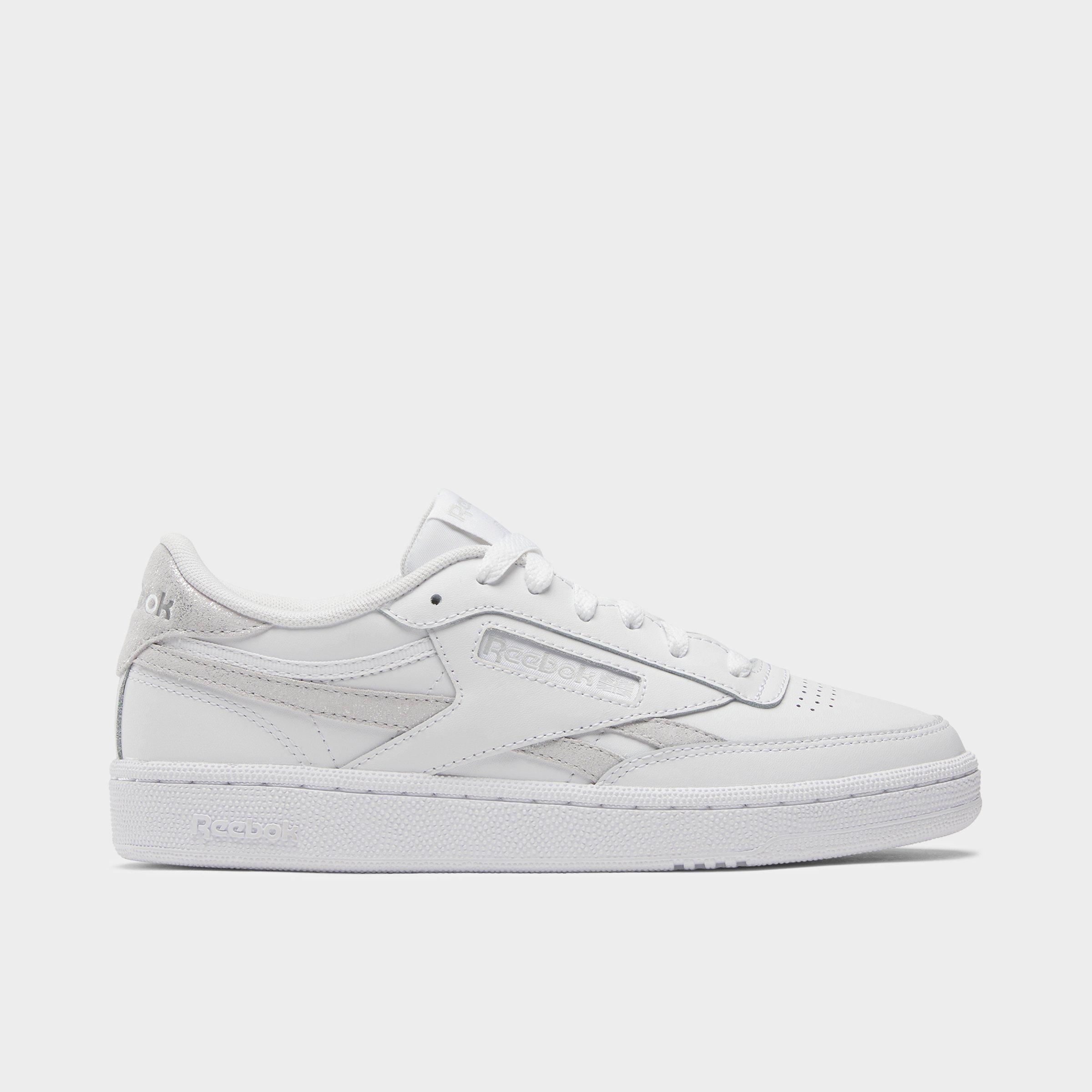 Supple leather upper has a premium look and feel Throwback court-inspired silhouette Cushioned collar and tongue Classic Reebok branding and details, including a Union Jack in the windowbox Die-cut EVA foam midsole for a cushy feel with every step Rubber sole for grip Classic ace closure secures the fit The Reebok Club C Revenge is imported. Out for vengeance against boring footwear? Lace-up the Women's Reebok Club C Revenge Casual Shoes and your daily shoe game gets one-up on those old, played-out kicks. Fresh new details and contrast color hits level-up the iconic Club C you've loved for years. Reebok Women's Club C Revenge Casual Shoes in White/Steely Fog/Silver Metallic Size: 10.5