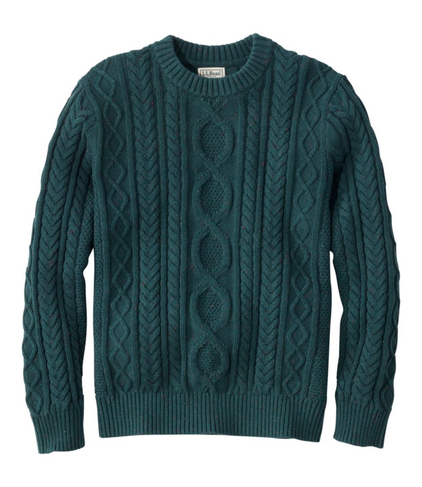 Our softest fisherman's sweater yet, in a richly textured cable-knit style. Made of machine-washable cotton for season-spanning comfort. Traditional Fit: Relaxed through the chest, sleeve and waist. Some colors feature Donegal flecks; see photos for a closer look. 100% cotton. Machine wash, dry flat. Ribbed trim at neck, cuffs and hem. Classic crewneck styling. Imported. Men's Heritage Soft Cotton Fisherman Sweater, Crewneck Deepest Green Donegal XXL, Cotton Blend L.L.Bean