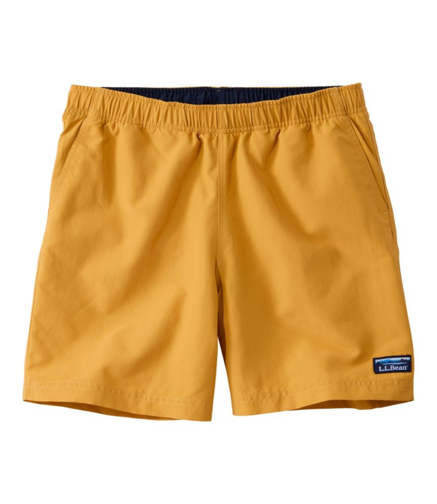 The most versatile swim trunks under the sun. Perfectly fit for swimming, running, kayaking or any unexpected adventure. Inseam: 6". Trim through hip and thigh. Classic Fit: Sits at waist. 100% nylon for durability. Rinse thoroughly after use. Built-in brief liner made from super-soft, quick-drying and anti-odor polyester mesh. UPF 50+ fabric blocks at least 97. 5% of the sun's UV rays. Machine wash and dry. Our iconic Mt. Katahdin logo on lower left leg. Updated elastic waistband has an internal adjustable drawstring for just the right fit. Water repellent fabric ensures they'll dry quickly. Side seam pocket and back welt pocket with Velcro-closure - both with mesh drainage panels. Three-ply SUPPLEX® fabric is lightweight, breathable and soft. Imported. Fit: Classic Fit Men's Sport Shorts with SUPPLEX fabric, 6" Warm Gold Extra Large, Nylon L.L.Bean