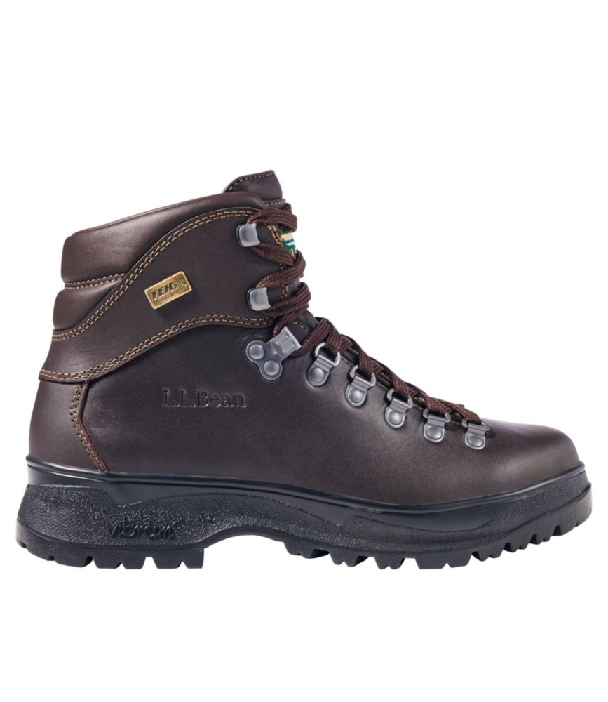Our most popular backpacking boots provide durable, reliable comfort on the most rugged trails. Order your regular shoe size. Spot clean. Vibram® rubber sole for reliable traction, especially on the downhill. Traditional hiking lace and D-Rings with speed hooks. Waterproof leather upper for outstanding durability and performance. Leather and textile lining. Boots require a reasonable amount of break-in time for maximum comfort on the trail. TEK2. 5® waterproof membrane in upper keeps feet dry. True Cushioned EVA footbed offers all-day cushion to ensure a comfortable ride. Best for rain, mud, and damp conditions. Waterproof up to 1 cm below the top of the gusset. Imported. Men's Cresta II Waterproof Hiking Boots, Leather Dark Brown 9(D), Leather/Rubber L.L.Bean