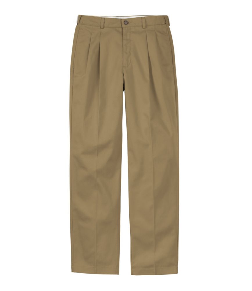 These khaki pants are a classic closet staple. Roomier in the seat and upper legs than our Classic Fit, these pleated Natural Fit khakis won't wrinkle or shrink-and their elastic waist panels make them fit perfectly from one wear to the next. Straight leg. Discreet elastic waist panels for a comfortable fit. Natural Fit: Sits at waist. Roomy through hip and thigh. Innovative treatment keeps fabric soft and eliminates wrinkles. Crisp, permanent creases. Made of premium 100% cotton. Our shrink-resistant, midweight 8. 6 oz. fabric holds its shape and wears well. Machine wash and dry. Fits belts up to 1Β½"W. Rugged buttons and sturdy zipper withstand years of wash and wear. Durable pockets are deep and roomy. Sturdy, no-roll waistband for exceptional comfort. Center-back belt loop keeps belt from riding up. Imported. Fit: Natural Fit Men's Wrinkle-Free Double L Chinos, Natural Fit, Hidden Comfort, Pleated Dark Khaki 36x32, Cotton L.L.Bean