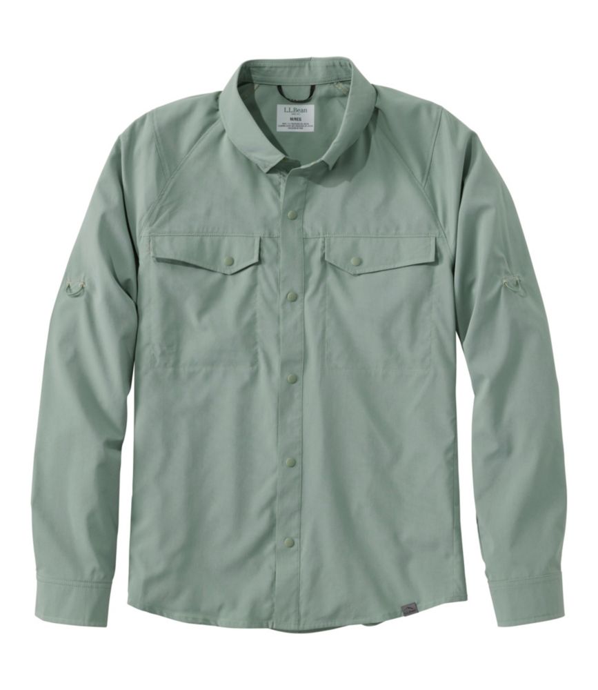 Our most comfortable fishing shirt features UPF 50+ sun protection, built-in stretch and incredibly soft fabric. Advanced technology helps keep you cool and prevents odor. It's also perfect for all types of outdoor adventures. Slightly Fitted Untucked Fit: Relaxed through chest and sleeve, with a trimmer waist and slightly shorter hem you can wear untucked. 71% polyester/29% nylon. Fabric provides UPF 50+ sun protection. Machine wash and dry. MCS Adaptive Technology activates evaporative cooling when the heat and humidity increases, keeping you comfortable and dry. Built-in stretch for comfort and range of motion. Perforated zone under arms allows cooling airflow. MCS Bioguard prevents the growth of odor causing bacteria. Roll up sleeves and secure with tabs for additional ventilation. Sunglass wipe cloth on lower hem. Easy-to-use snap closures on front, cuff, collar point and roll tab are cleanly designed to avoid snagging fly line. Designed to be worn tucked or untucked. Two chest po