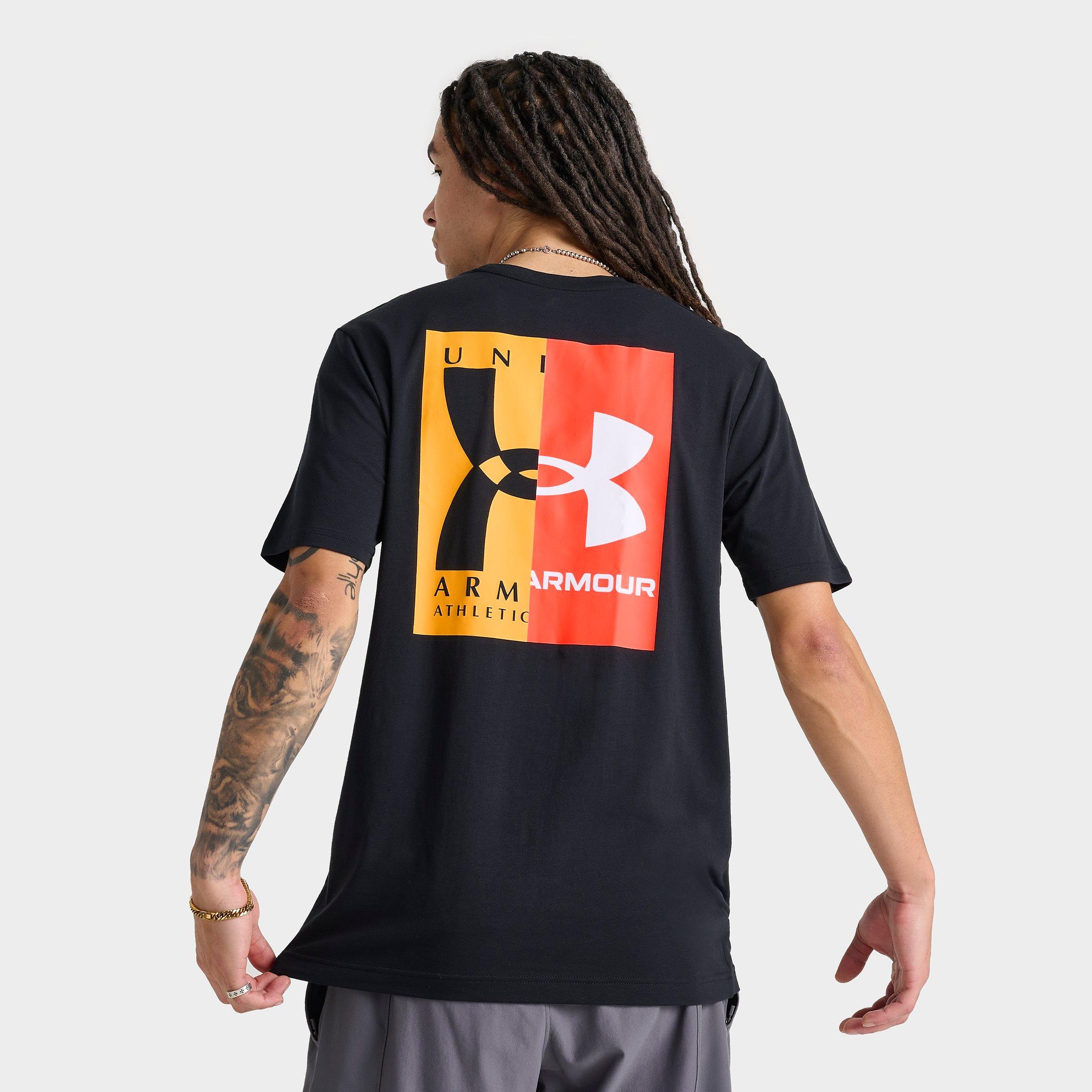Size & Fit Loose fit is oversized and roomy Product Features Lightweight, super-soft cotton-blended fabric for easy comfort and wearability Assortment of logos on the left chest showcases the evolution of UA Large graphic across the back blends retro and contemporary UA iconography Short-sleeve silhouette with a ribbed crew collar for a stay-put fit60% cotton, 40% polyester Machine wash The Under Armour UA EVOL Logo T-Shirt is imported. Embrace the journey of evolution with the Men's Under Armour UA EVOL Logo T-Shirt. Graphics on the front and back showcase the Under Armour logos over the years, resting over ultra-soft and quick-drying blended fabric for a tee that fits right into your everyday attire, from casual outings with your crew to some chilled-out alone time to gym sessions. Under Armour Men's UA EVOL Logo T-Shirt in Black/White/Campus Gold Size: Small