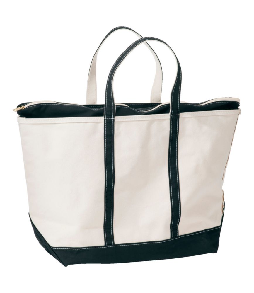 There's only one Boat and Tote - ours. From the heavyweight canvas to the reinforced handles to the double-stitched seams, nothing compares to our zip-top Boat and Tote. Still crafted in Maine, one tote at a time. Spot clean. Heavy-duty 24 oz. cotton canvas. Double-layer base. Handles tested to hold up to 500 pounds. Overlapped seams are double-stitched with nylon so they won't rot or break. Reinforced flat canvas bottom. Add a monogram for a personal touch (or the perfect gift). Natural color with contrast-tone handles in your choice of lengths. Handcrafted in Maine since 1944, one tote at a time. Made in Maine. Boat and Tote, Zip-Top Black Trim Reg, Canvas/Nylon L.L.Bean
