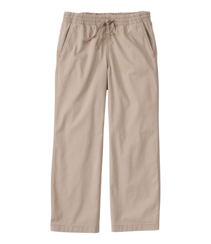 With a pull-on elastic waistband, our most comfortable chinos have an easygoing feel and just the right amount of stretch. These wide-leg cropped pants look and feel great all day long. Relaxed through hip and thigh. Inseam: Regular 23", Petite 21", Plus 23". Mid-Rise (Favorite Fit): Sits below waist. Wide-leg. Soft, substantial blend of 97% cotton with 3% spandex. Washed for lived-in appeal. Machine wash and dry. Front hand pockets and back patch pockets. Comfortable elastic waistband with adjustable drawstring. Imported. Fit: Mid-Rise/Favorite Women's Lakewashed Pull-on Chinos, Mid-Rise Wide-Leg Crop Deep Sand 4, Cotton L.L.Bean