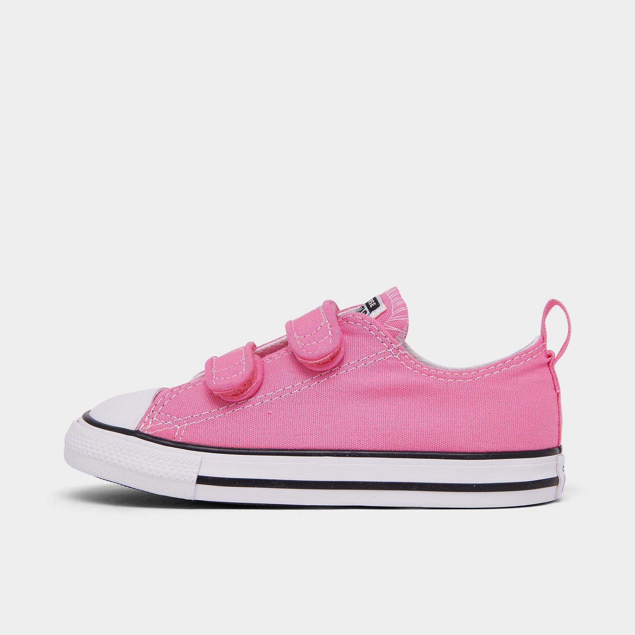 Classic Chuck Taylor All star branding Durable canvas upper stands up to wear and tear Dual adjustable hook-and-loop closures for easy on Vulcanized rubber sole Textile lining The Converse Chuck Taylor Low Top 2V Hook-and-Loop is imported. The classic Chuck Taylor Low Top you've loved for years is here to stay - and now, it's even easier to put on. This Chuck Taylor Low Top 2V model offers two adjustable hook-and-loop strap closures for smooth sailing when it's time to put these babies on or take them off. Converse Kids Toddler Chuck Taylor All Star 2V Casual Shoes in Pink Size: 10.0