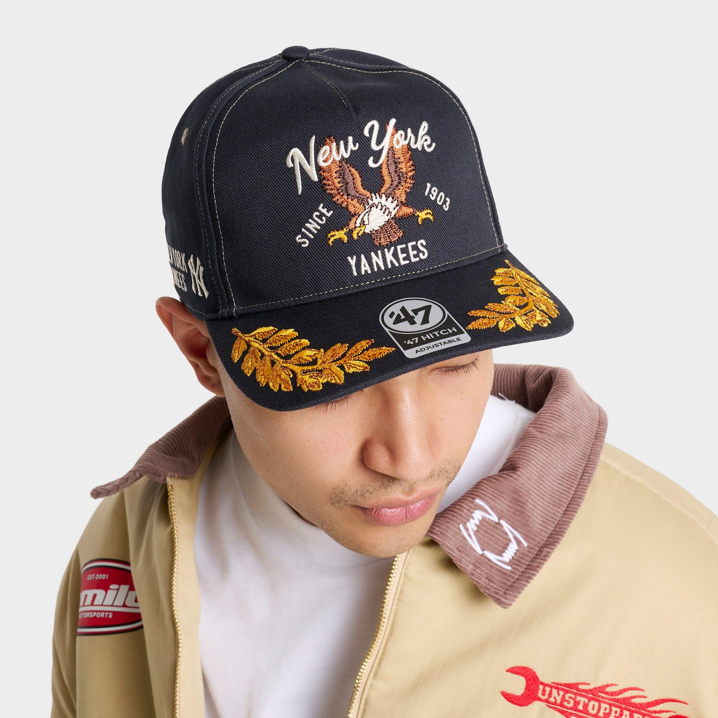 Garment-washed cotton twill material Structured mid-fit crown Eyelets for breathability Curved bill Front team embroidery Side '47 embroidery Snapback closure The '47 New York Yankees MLB HITCH Snapback Hat is imported. Rep your favorite team and finish any casual look in style with the '47 New York Yankees MLB HITCH Snapback Hat. The '47 HITCH has a structured, mid-fit crown, a curved bill and an adjustable snapback closure so you can lock in the perfect fit. 47 Brand '47 New York Yankees MLB HITCH Snapback Hat in Navy
