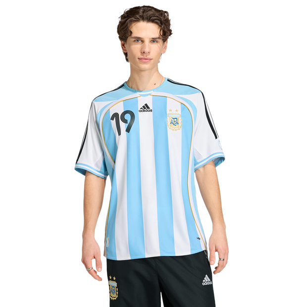 The Argentina 26 Home Messi Jersey is more than just a jersey. It's a celebration of Argentina's football legacy. This jersey marks the first World Cup where the team proudly wears the 3rd star, symbolising their triumphs in '78, '86, and '22. Integrated Climacool fabric technology wicks and disperses your sweat for a cool, dry and distraction-free performance, so you can feel fresh, focused and ready, even during intense matches. With a slim fit, this jersey offers a sleek and athletic look, allowing you to move freely and confidently. The interlock fabric offers durability and comfort, making it a great choice for a range of activities. Embrace the spirit of the World Champions with this jersey. Whether you're on the pitch or cheering from the stands, this jersey connects you to the heart of Argentina's football DNA. Slim fit Collar 100% polyester (100% recycled) Standard length CLIMACOOL technology