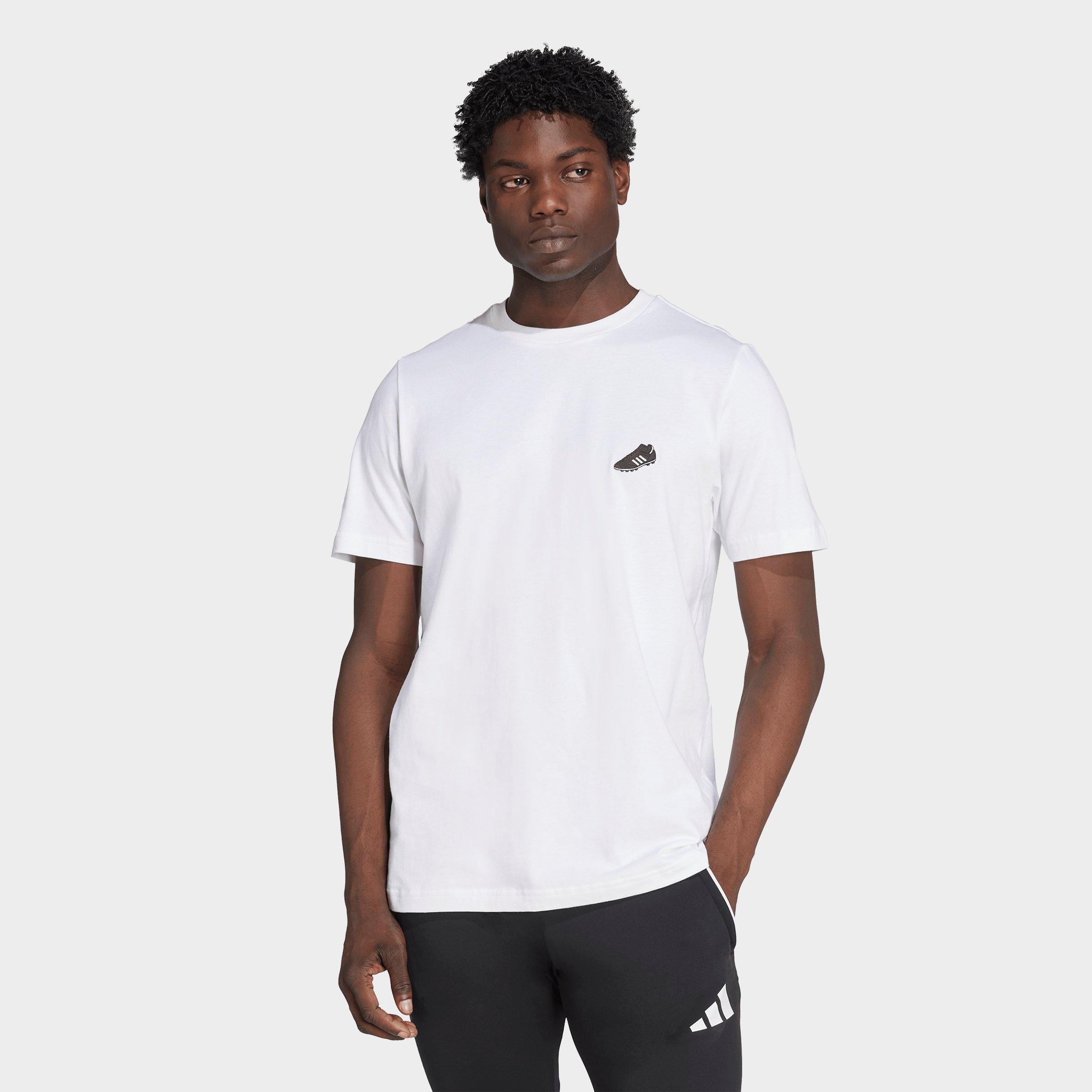 Size & Fit Standard fit is athletic and relaxed Product Features Soft and comfortable single-jersey cotton construction Small Copa boot graphic on the left chest adidas Copa Mundial near the rear collar Ribbed crew collar 100% cotton Machine wash The adidas Soccer Copa Graphic T-Shirt is imported. Commemorate your love for the beautiful game in your everyday attire with the Men's adidas Soccer Copa Graphic T-Shirt. Soft, breathable single jersey fabric keeps you cool and comfortable, while minimalist graphics add a heritage soccer touch that any fan recognizes. adidas Men's Soccer Copa Graphic T-Shirt in White Size: 4XL