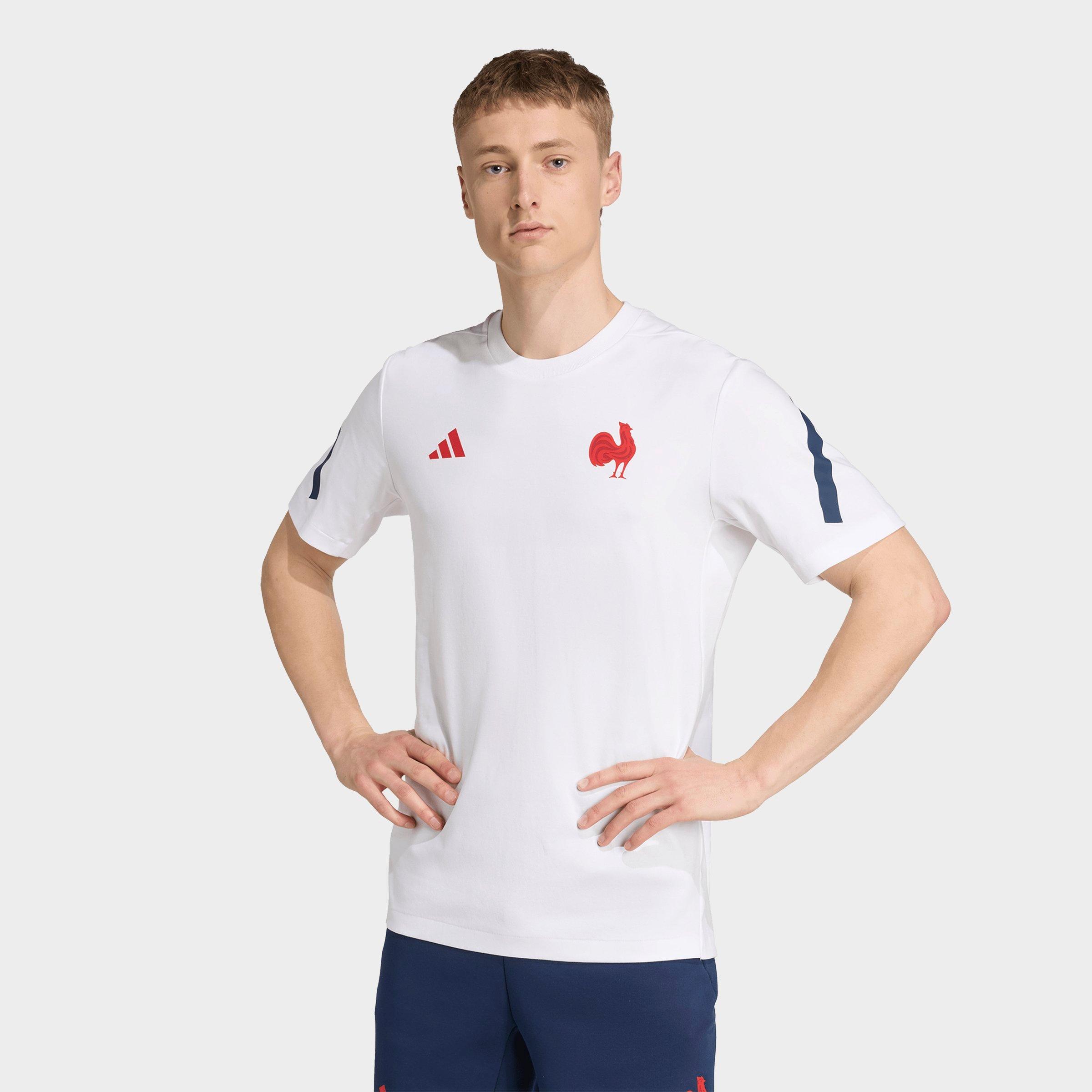 Size & Fit Standard fit is athletic and relaxed Product Features Soft and lightweight cotton construction for all-day comfort France soccer crest and 3-Stripes on the chest for signature team style Ribbed crew collar for a stay-put fit 100% cotton Machine wash The adidas Soccer France Travel T-Shirt is imported. Show your team spirit with the Men's adidas Soccer France Travel T-Shirt. Designed for comfort between matches, this travel tee features the bold Gallic rooster on the chest, alongside the iconic 3-Stripes logo over soft cotton, proudly showcasing your team spirit for the France national team. adidas Men's Soccer France Travel T-Shirt in White Size: Medium
