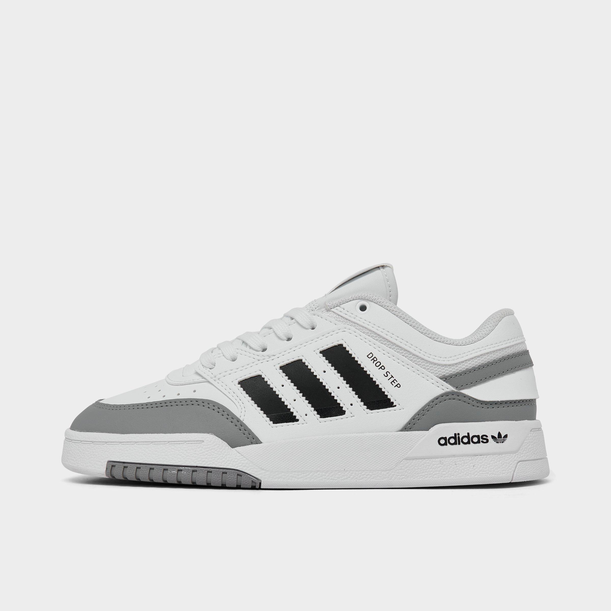 Low-top retro basketball-inspired silhouette Leather and nubuck on the upper offer a premium look Lace-up closure secures the fitadidas 3-Stripes on the sides with a Trefoil logo for authentic adidas attitude Reflective detailing adds a shine to the design Chunky midsole for a trendy vibe and a smooth ride Durable rubber outsole offers street-ready traction The adidas Originals Drop Step Low Casual Shoes are imported. Lace up the Big Kids' adidas Originals Drop Step Low Casual Shoes for sleek everyday style from the court to the courtyard. Inspired by vintage basketball silhouettes in the adidas archives, the Drop Step Low brings back the best old-school flavor for a fresh, contemporary favorite. adidas Big Kids Originals Drop Step Low Casual Shoes in White/Grey/Black Size: 3.5