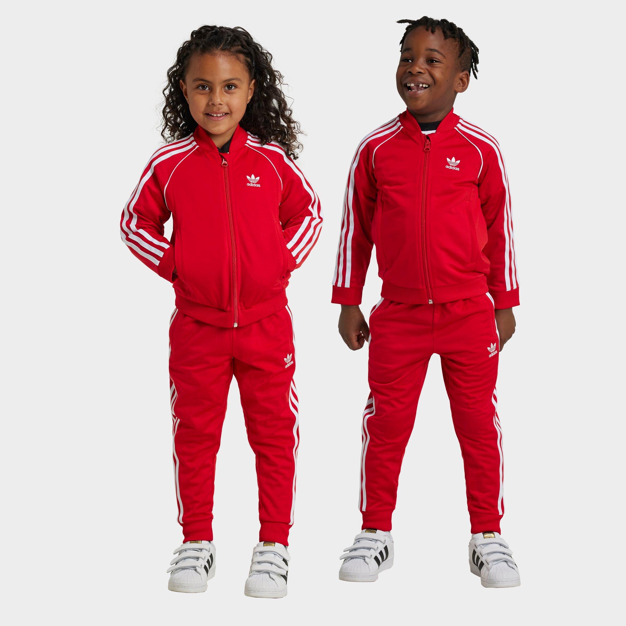 Size & Fit Regular fit for a relaxed feel Made from Sustainable Materials This product is made with around 100% recycled polyester materials Product Features Full-zip jacket with ribbed bomber collar Soft polyester tricot material Ribbed cuffs and hems on top and pants Side pockets on top Elastic waist with drawcord100% recycled polyester tricot Machine wash The adidas Originals adicolor Superstar Track Suit is imported. Dress your little one in timeless adidas style with the Infant and Toddler adidas Originals adicolor Superstar Track Suit. This iconic adidas look features the 3-Stripes and Trefoil designs you know and love for a look that will always be in style. adidas Little Kids Originals adicolor Superstar Track Suit in Rose Tone Size: 18M