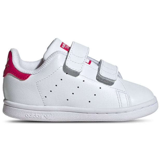 Since their debut more than 50 years ago, the adidas Stan Smith shoes have been a style staple for all ages. Now even the littlest feet can step out in an icon. These infants' shoes bring the classic white upper and contrast heel tab to a slip-on style perfect for fast-growing feet. Hook-and-loop straps make them easy to slip on and off while the smooth leather upper and perforated 3-Stripes complete the signature style. Regular fit Hook-and-loop strap closure Leather and synthetic upper