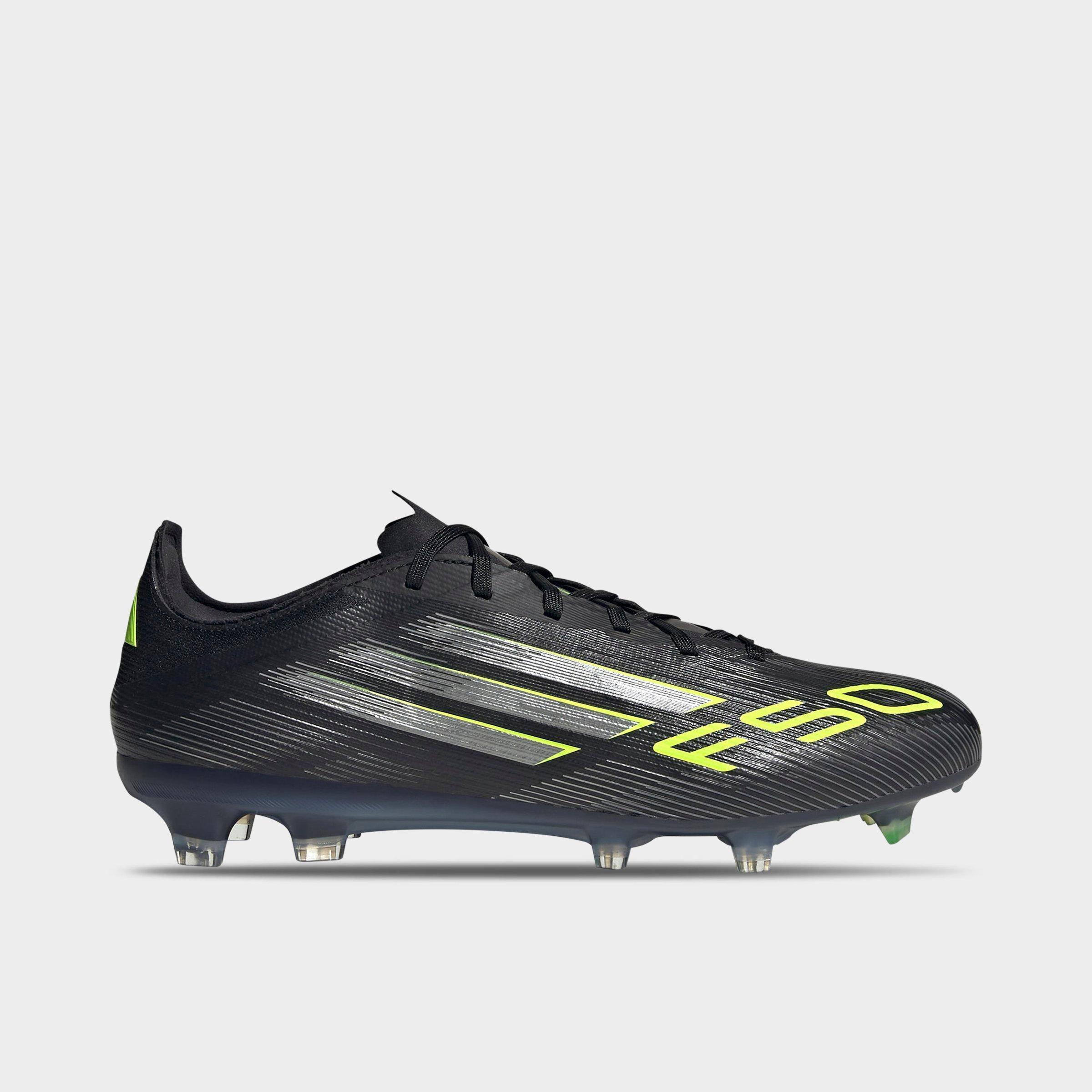 adidas Men's F50 Pro Firm Ground Soccer Cleats in Black/Iron Metallic/Lucid Lemon Size: 5.0