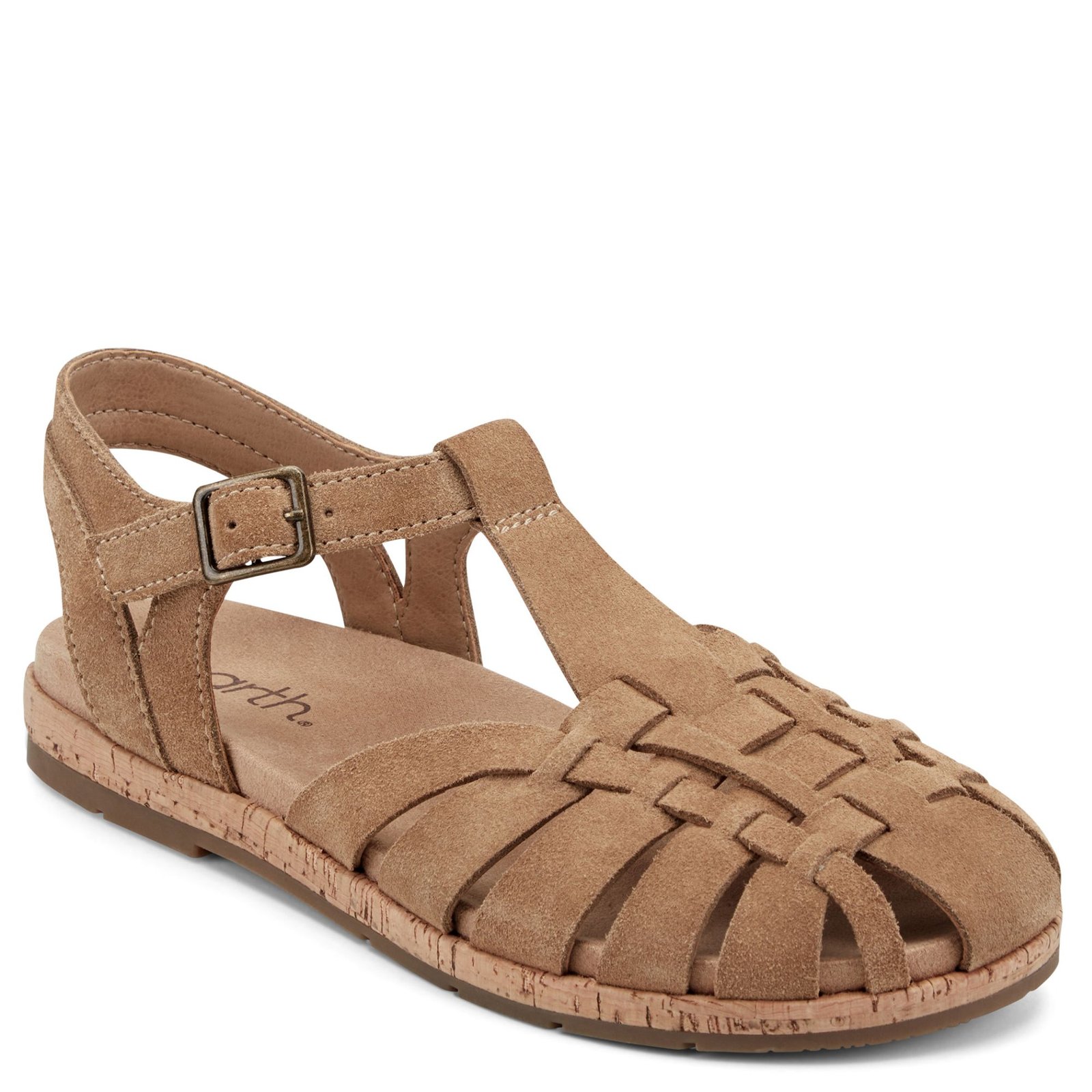 *Supreme comfort responsible design effortless styles the earth® Alazia casual sandal has all three *Leather upper with closed-toe silhouette *Adjustable ankle strap *Lightly cushioned footbed *3/4" heel height