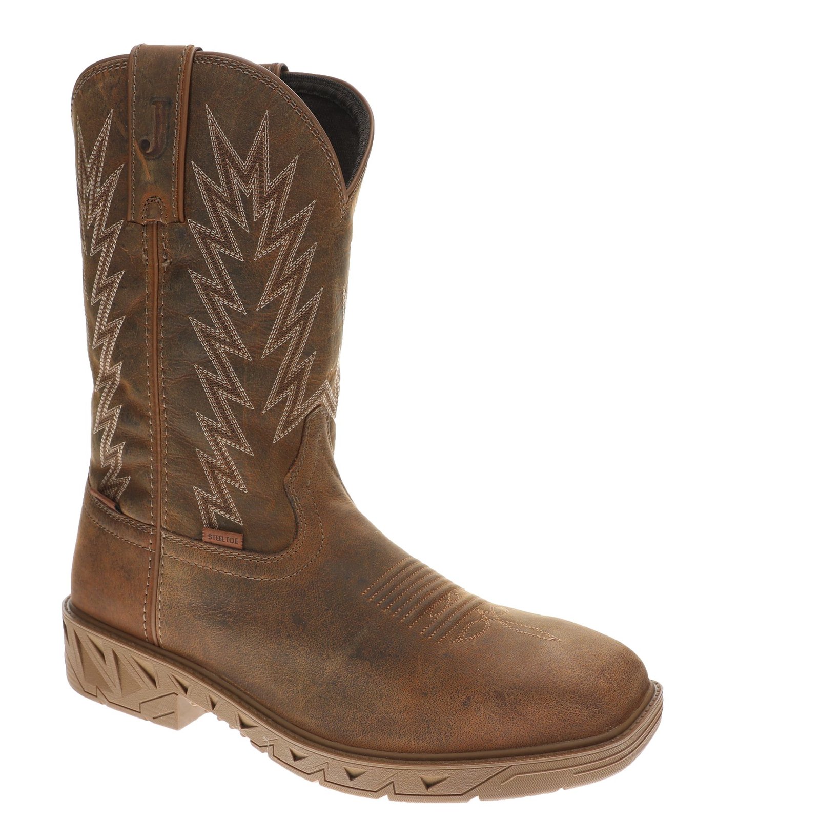 *Waterproof water buffalo leather upper with a square steel toe *11" shaft height *Woven lining *Removable orthotic insole *Oil- and slip-resistant rubber outsole *1-5/8" heel height