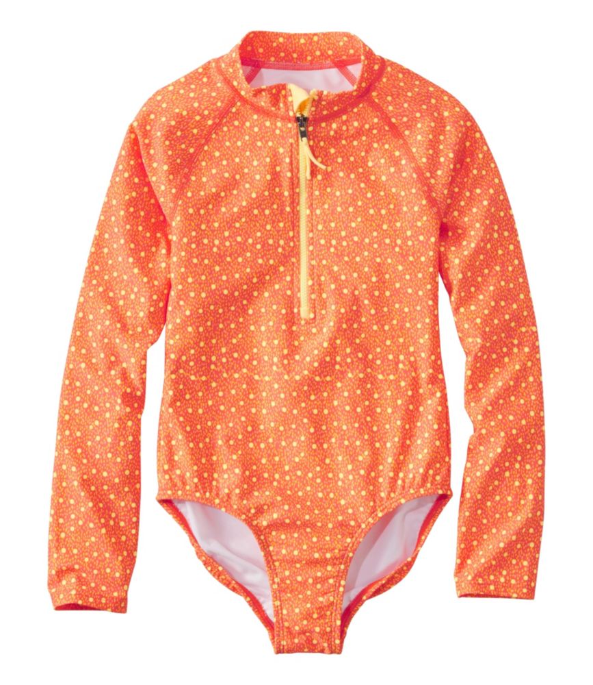 Girls' Watersports Swimwear, Rashguard One-Piece Hot Coral Dot 12, Synthetic/Nylon L. L.Bean