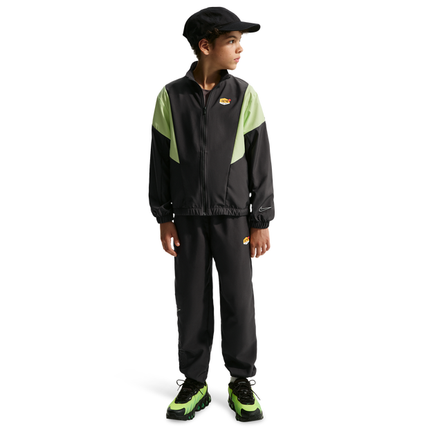 Everyday Style, Mbappé Identity The Nike Kylian Mbappé Tracksuit is designed for comfortable daily wear. The woven fabric provides a smooth feel, and the cinched cuffs help maintain a secure fit. Its embroidered details highlight the Mbappé design. Nike Kylian Mbappé Tracksuit Features: * Woven fabric * Embroidered details on the back and ankle * Cinched cuffs at wrists and ankles * Hand pockets * Elastic waistband with quick-tie drawcord * Machine wash * 100% polyester