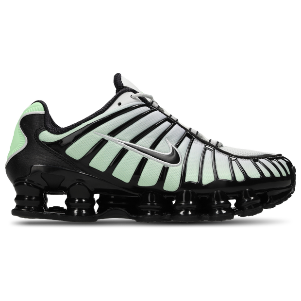 The Nike Shox TL takes mechanical cushioning to the next level.A recrafted version of the 2003 icon, it features breathable mesh in the upper, with full-length Nike Shox technology for optimal impact absorption and a bold look on the streets. Benefits: Nike Shox technology combines resilient, flexible columns with moderator plates for outstanding cushioning that compresses and regains its shape. A combination upper with a full TPU cage is a near-exact replica of the 2003 Nike Shox TL. Moulded overlays throughout the midfoot provide support and a snug fit. A TPU plate in the heel between the midsole and Nike Shox technology help provide lateral stability and support. A foam midsole provides lightweight cushioning. Non-marking, solid rubber in a modified Waffle outsole gives great traction and durability. Product Details: Synthetic and textile upper