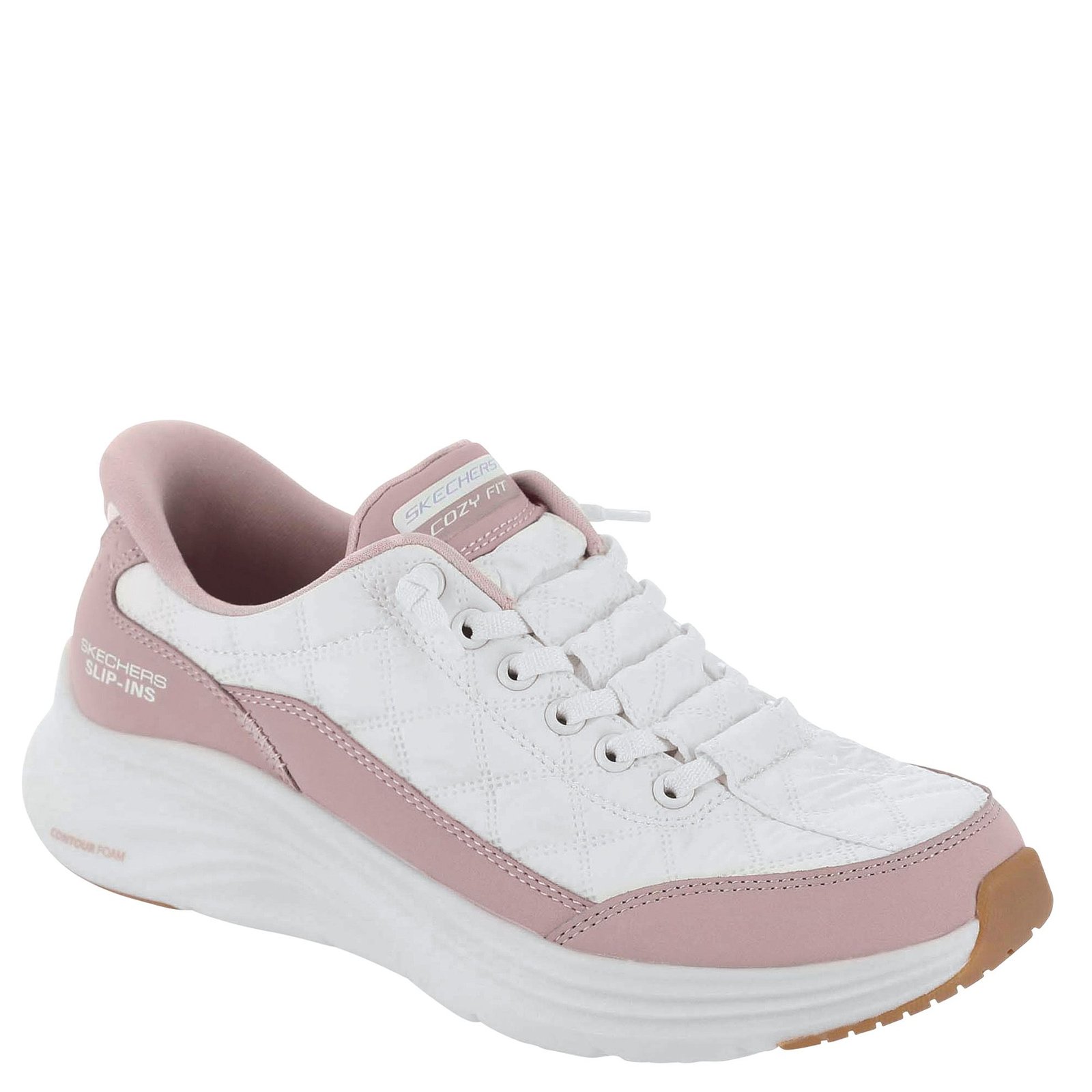 *Fabric and synthetic upper with flower details *Comfortable stretchy bands across the vamps *Skechers Slip-ins® *Cushioned footbed *1-1/4" heel height