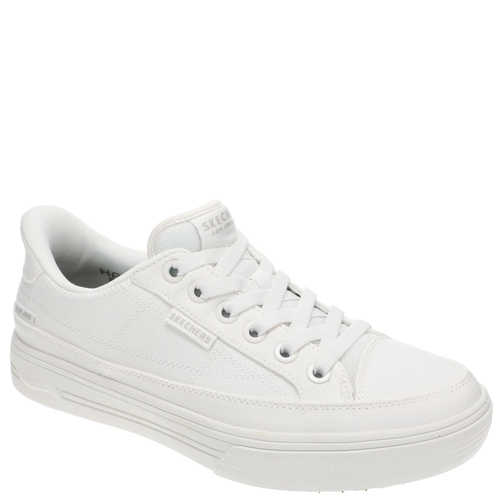 *Casual slip-on from Skechers USA *Smooth leather upper with stretch laces *Skechers Hands Free Slip-ins® for an easy fit *Skechers Air-Cooled Memory Foam® cushioned comfort insole *Charcoal-infused insole neutralizes odor *Skechers Goga Mat Arch & trade; cushioning for added support *Exclusive Heel Pillow & trade; holds your foot securely in place *Lightweight midsole with flex cutout detail *Flexible traction outsole *1-1/4" heel height