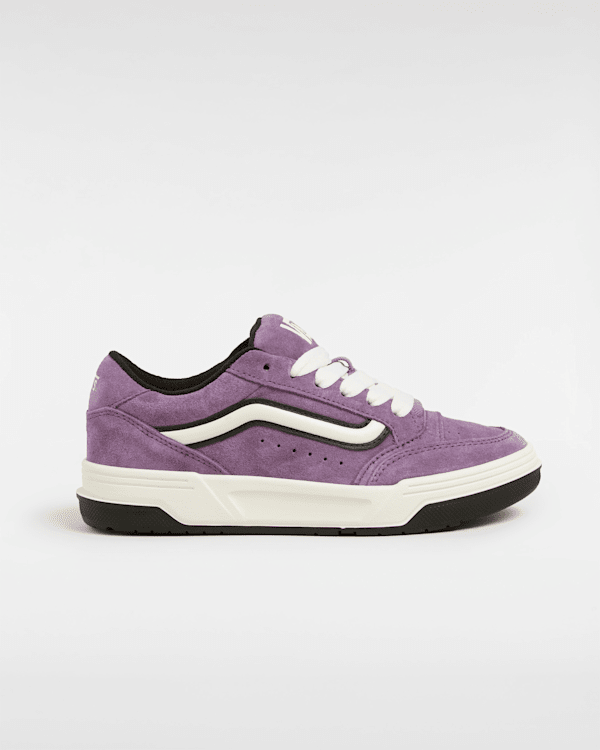 Heden en verleden komen samen in deze schoen met een Y2K-look De Hylane heeft een Y2K-skatelook en is een nieuwe interpretatie van ons Upland-silhouet uit 1999. Verwijzingen naar het verleden worden gecombineerd met nieuwe ontwerpdetails zoals de glanzende 3D-Sidestripe en geborduurde logo's. Het stoere silhouet en de dikke skatetong zorgen voor een retro-uitstraling. Dankzij een cupzoolconstructie met een unieke interlocking V-textuur wordt een oldskool-look getransformeerd in een must-have van nu. Bovenwerk van sude en synthetisch materiaal Glanzende, dikke Sidestripe Dikke Y2K-skatetong Cupzool van cold cement Stoere zijkanten met compressiekanaal Omgekeerde wafelzool met oversized Vans-logo en flexibele groeven